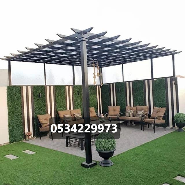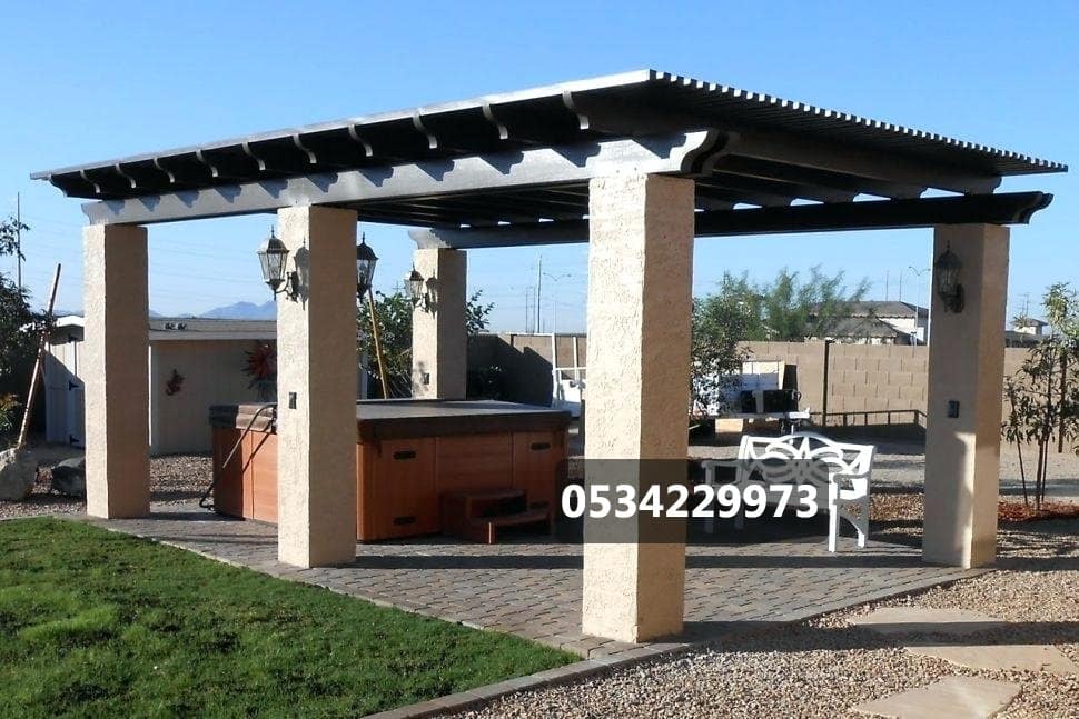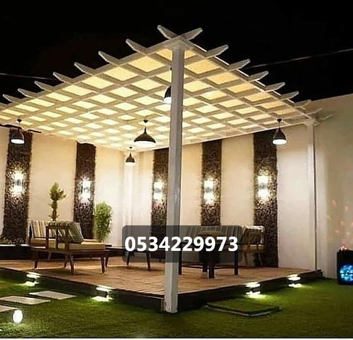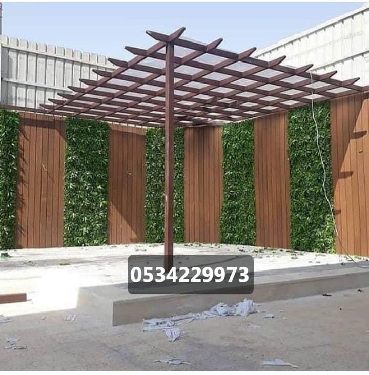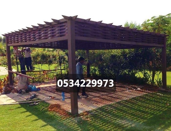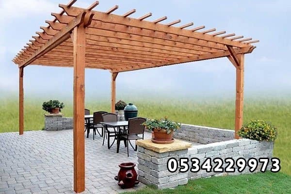 • برجولات خشبية مثمنة الاضلاع وسداسية