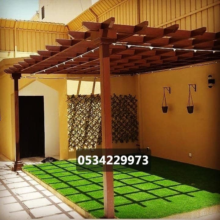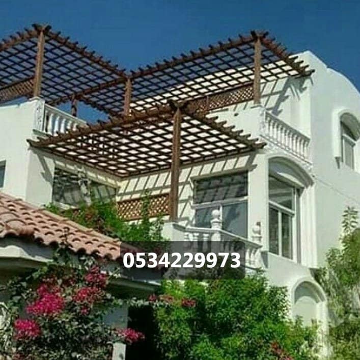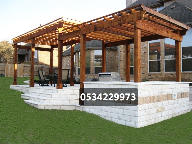 برجولات خشبية بالرياض متخصصون في تركيب جميع انواع واشكال مظلات البرجولات الخشبية للأسطح وبرجولات خشب بلاستيك للحدائق المنزلية والاماكن العامة والمتنزهات وبرجولات حديد  وقماش  في الشرقية والدمام والرياض وجدة وجميع مدن السعودية, كما نضمن لكم برجولات خشبية للروف مظلات وبرجولات خشبية للحدائق بأفضل اسعار السوق وجميع انواع الخشب المميزة, في تركيب مظلات البرجولات الخشبية في الرياض وتختلف تصاميم البرجولات وانواع البرجولات الخشبية لدينا باختلاف ذوق كل زبون وحاجته.
