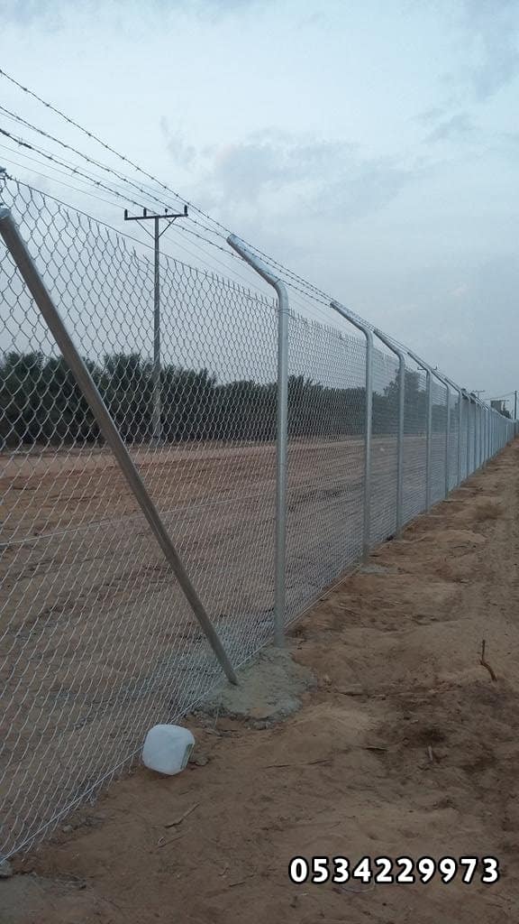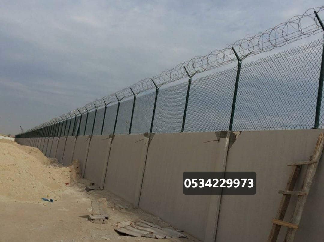 يتم اعتماد المتر الطولي للتوريد والتركيب من خلال عمل قواعد خرسانية عاديه على مسافات متقاربه وصب القواعد صبة خرسانية مقاومة وعمل عمدان من المواصير المجلفنة ويتم تركيب وايرات الربط و شبك حماية سفلي بالارتفاع المطلوب وعمل الاسلاك الشائكه حسب الطلب وتركيب البوابات حسب المخططات او الاقتراحات المراد تركيبها على اكمل وجه طبقا لأصول الصنعه وتعليمات المختصين والاستشاريين والمهندس المشرف.